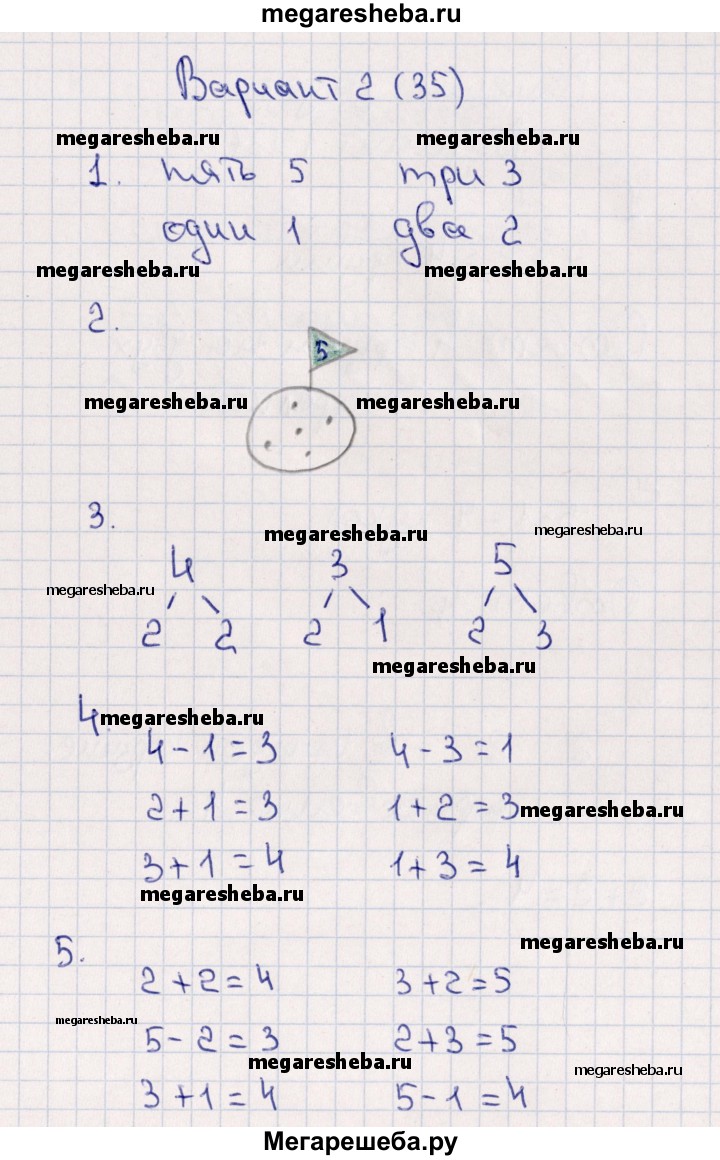 Подробный решебник (ГДЗ) по Математике за 1 (первый) класс самостоятельные работы к учебнику Моро - готовый ответ часть 1 числа 1-5. прибавление, вычитание - Вариант 2. Авторы учебника: Самсонова. Издательство: Экзамен 2014.