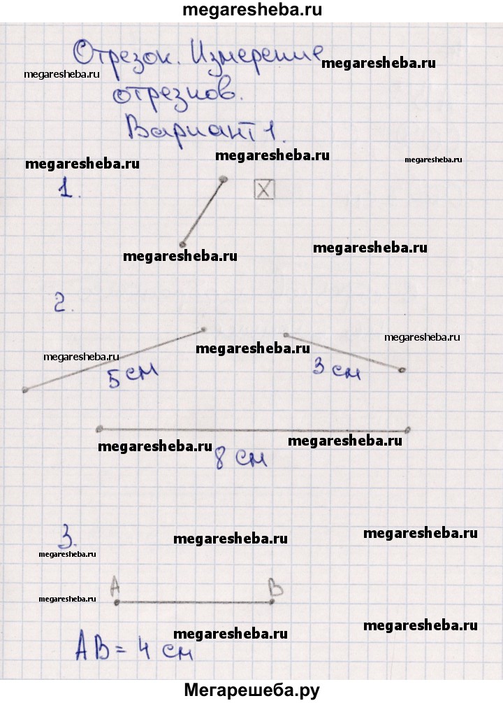 ГДЗ по математике 1 класс Самсонова самостоятельные работы к учебнику Моро часть 2 отрезок. измерение отрезков - Вариант 1