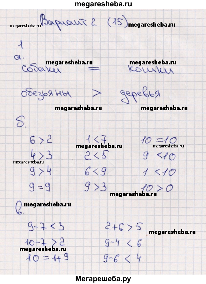 ГДЗ по математике 1 класс Самсонова самостоятельные работы к учебнику Моро часть 2 сравнение чисел - Вариант 2