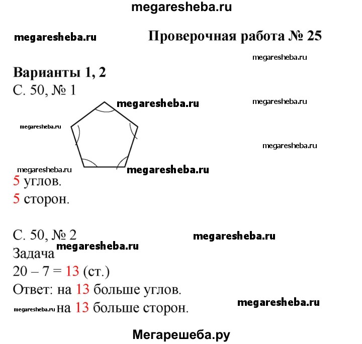 Подробный решебник (ГДЗ) по Математике за 2 (второй) класс Тетрадь для проверочных и контрольных работ - готовый ответ часть 1 проверочные работы проверочная работа 25 (вариант) - 1,2. Авторы учебника: Чуракова. Издательство: Академкнига 2017.