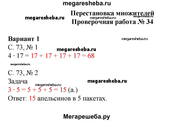 Подробный решебник (ГДЗ) по Математике за 2 (второй) класс Тетрадь для проверочных и контрольных работ - готовый ответ часть 1 проверочные работы проверочная работа 34 (вариант) - 1. Авторы учебника: Чуракова. Издательство: Академкнига 2017.