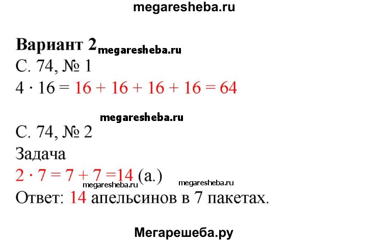 ГДЗ по математике 2 класс Чуракова Тетрадь для проверочных и контрольных работ часть 1 проверочные работы проверочная работа 34 (вариант) - 2