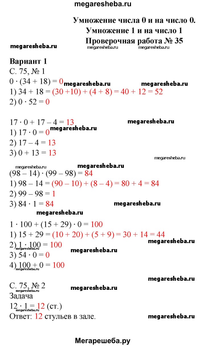 Подробный решебник (ГДЗ) по Математике за 2 (второй) класс Тетрадь для проверочных и контрольных работ - готовый ответ часть 1 проверочные работы проверочная работа 35 (вариант) - 1. Авторы учебника: Чуракова. Издательство: Академкнига 2017.