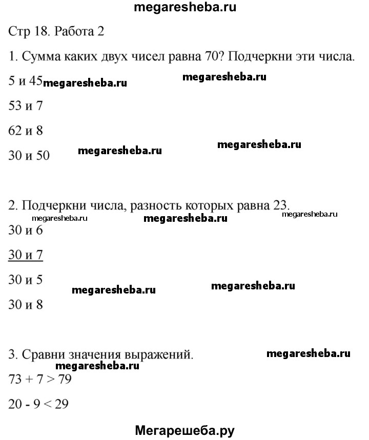 Подробный решебник (ГДЗ) по Математике за 2 (второй) класс рабочая тетрадь Устный счёт - готовый ответ страница - 18. Авторы учебника: Рудницкая. Издательство: Экзамен 2017-2024.