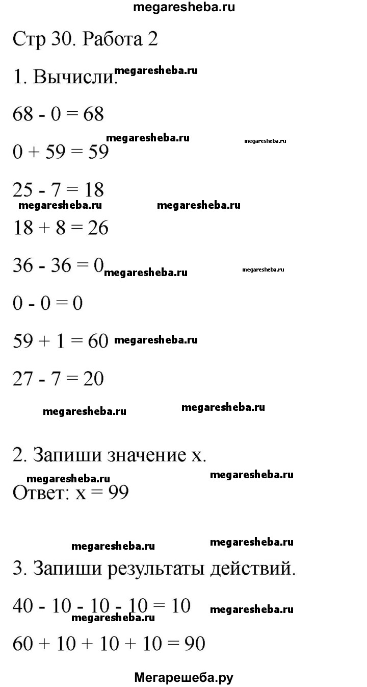 Подробный решебник (ГДЗ) по Математике за 2 (второй) класс рабочая тетрадь Устный счёт - готовый ответ страница - 30. Авторы учебника: Рудницкая. Издательство: Экзамен 2017-2024.