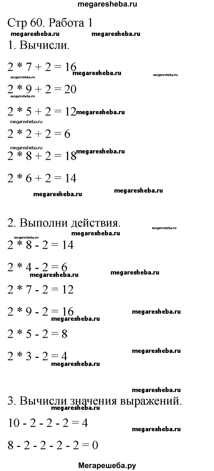 Подробный решебник (ГДЗ) по Математике за 2 (второй) класс рабочая тетрадь Устный счёт - готовый ответ страница - 60. Авторы учебника: Рудницкая. Издательство: Экзамен 2017-2024.