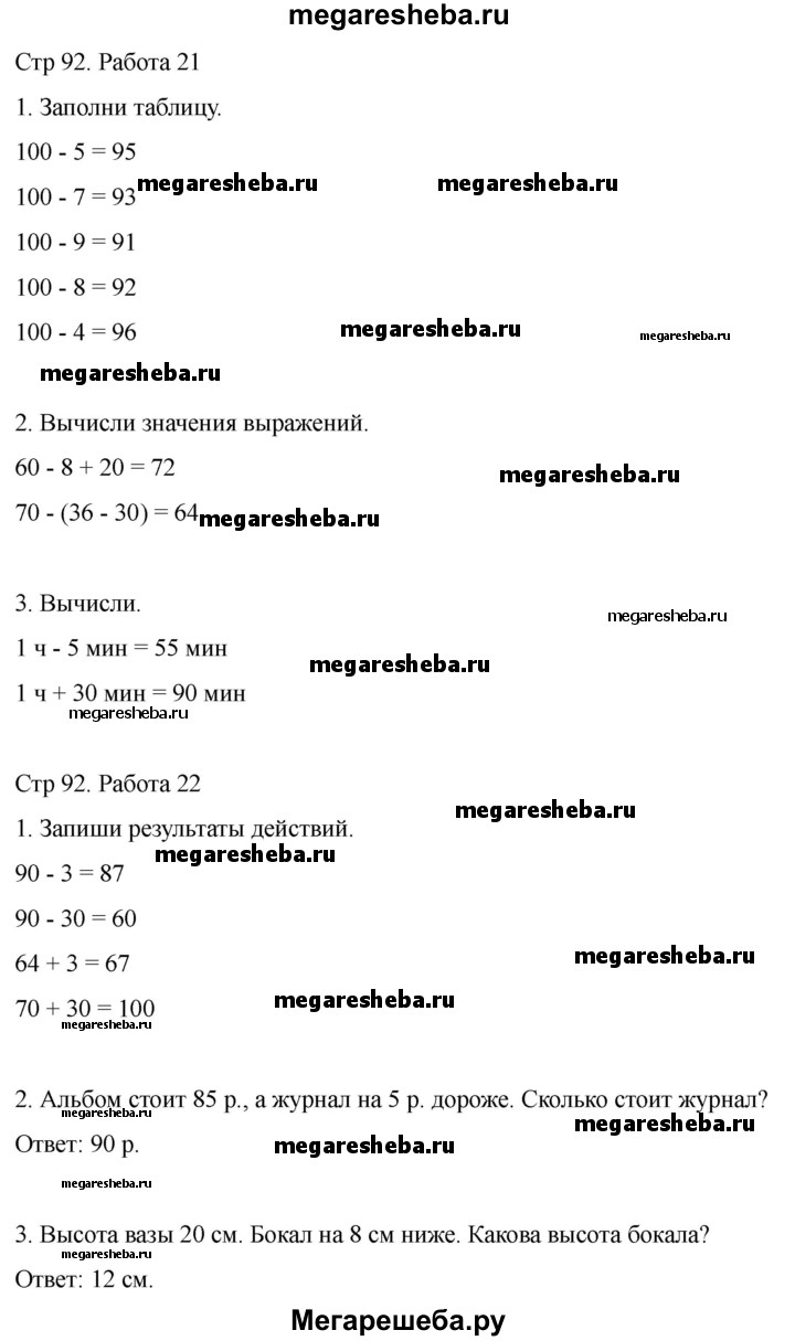 Подробный решебник (ГДЗ) по Математике за 2 (второй) класс рабочая тетрадь Устный счёт - готовый ответ страница - 92. Авторы учебника: Рудницкая. Издательство: Экзамен 2017-2024.