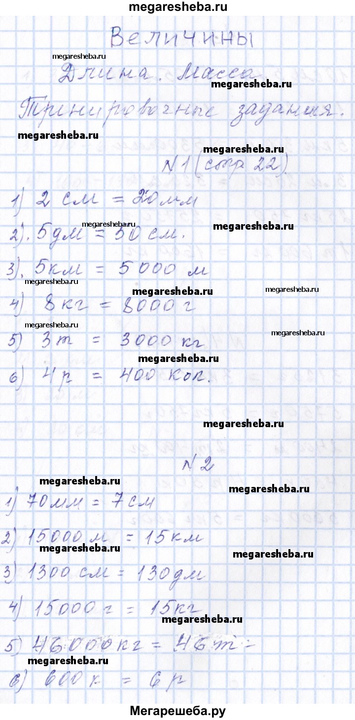 Решебник №2 / часть 1 / величины / длина. масса (задание) / тренировочные задания