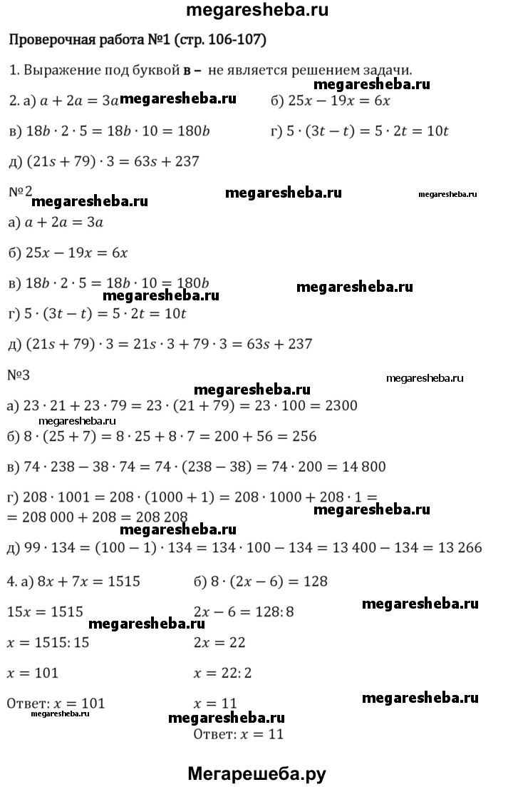 Подробный решебник (ГДЗ) по Математике за 5 (пятый) класс - готовый ответ §3 проверьте себя - стр. 106-107. Авторы учебника: Виленкин, Жохов, Чесноков, Александрова, Шварцбурд. Издательство: Просвещение 2021-2024.