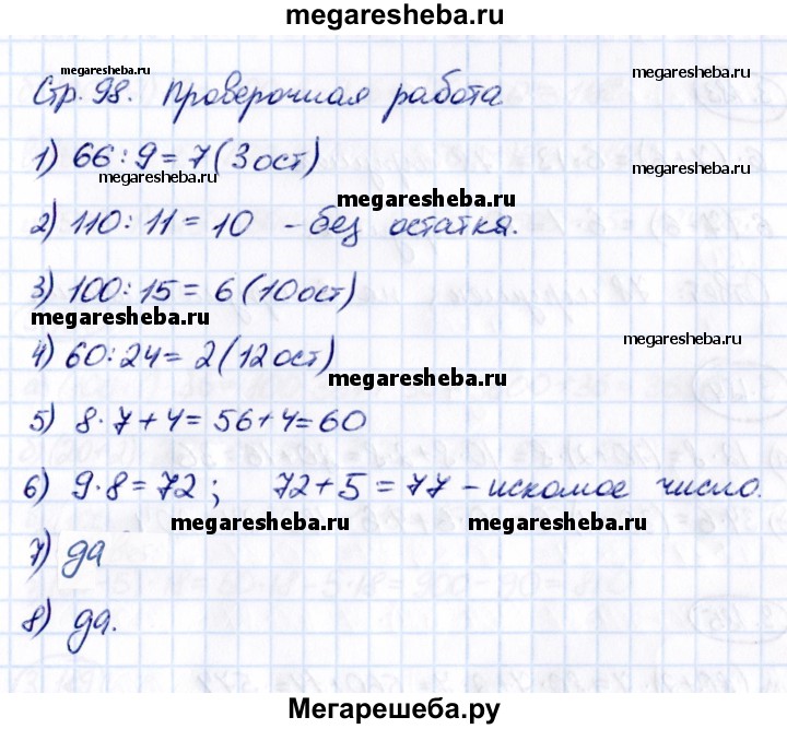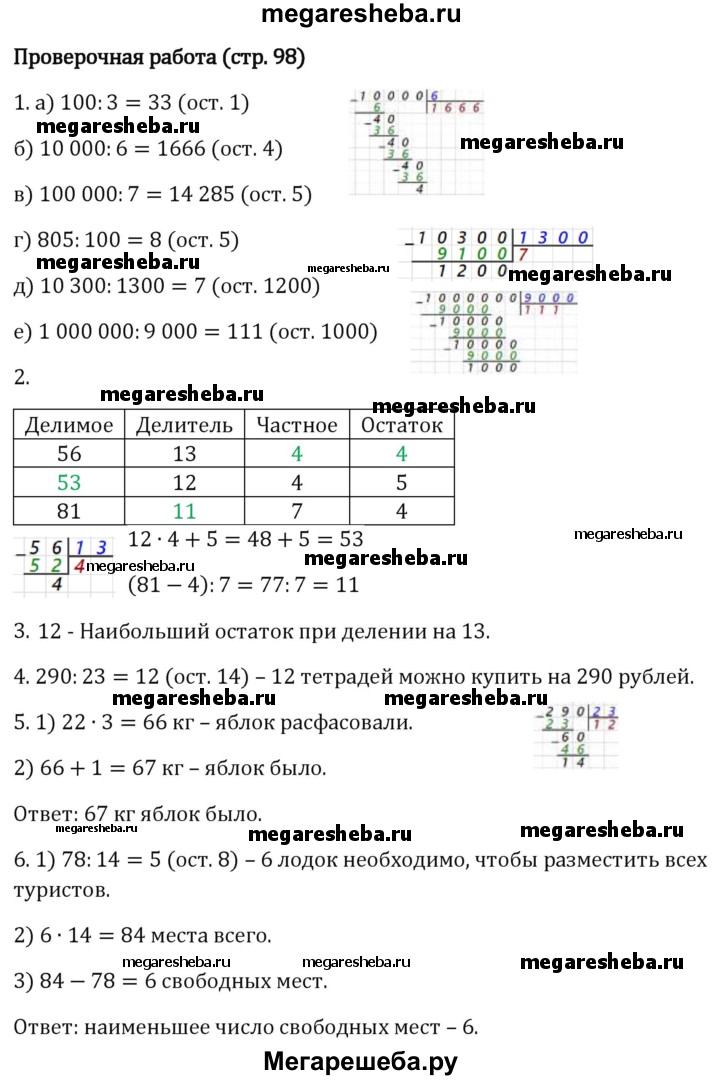 Подробный решебник (ГДЗ) по Математике за 5 (пятый) класс - готовый ответ §3 проверьте себя - стр. 98. Авторы учебника: Виленкин, Жохов, Чесноков, Александрова, Шварцбурд. Издательство: Просвещение 2021-2024.