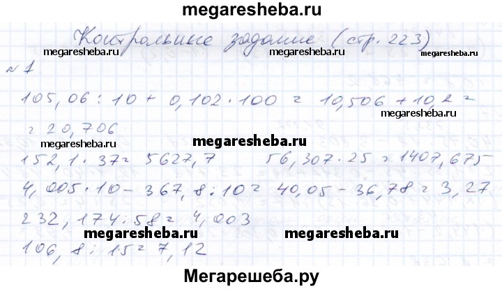 ГДЗ по математике 8 класс Эк Для обучающихся с интеллектуальными нарушениями контрольное задание страница 223 - 1
