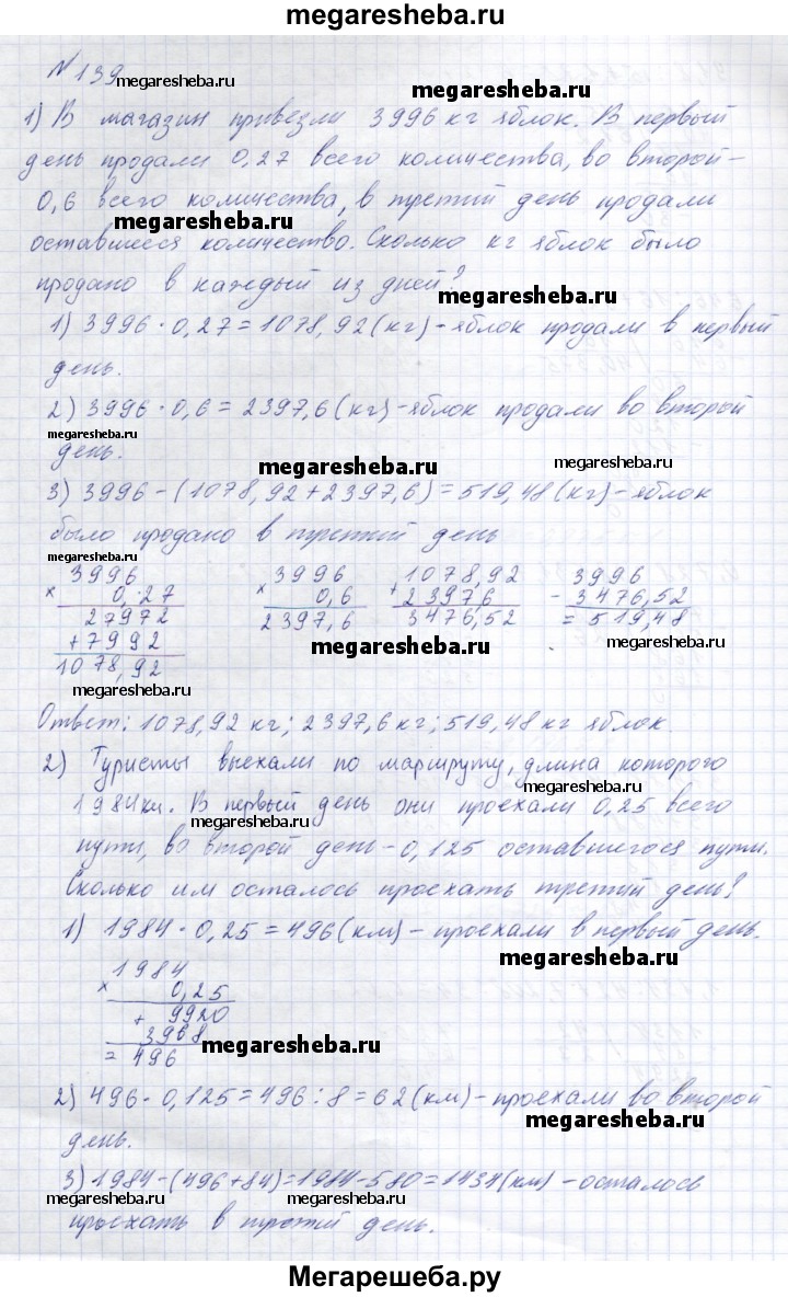 Подробный решебник (ГДЗ) по Математике за 8 (восьмой) класс - готовый ответ упражнение - 139. Авторы учебника: Эк, Для обучающихся с интеллектуальными нарушениями. Издательство: Просвещение 2021.