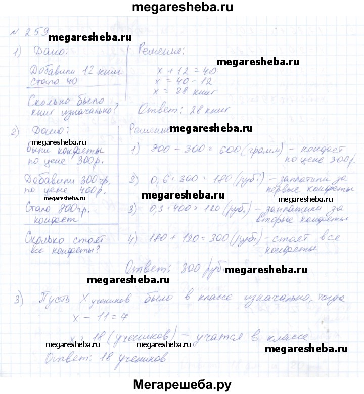 Подробный решебник (ГДЗ) по Математике за 8 (восьмой) класс - готовый ответ упражнение - 259. Авторы учебника: Эк, Для обучающихся с интеллектуальными нарушениями. Издательство: Просвещение 2021.