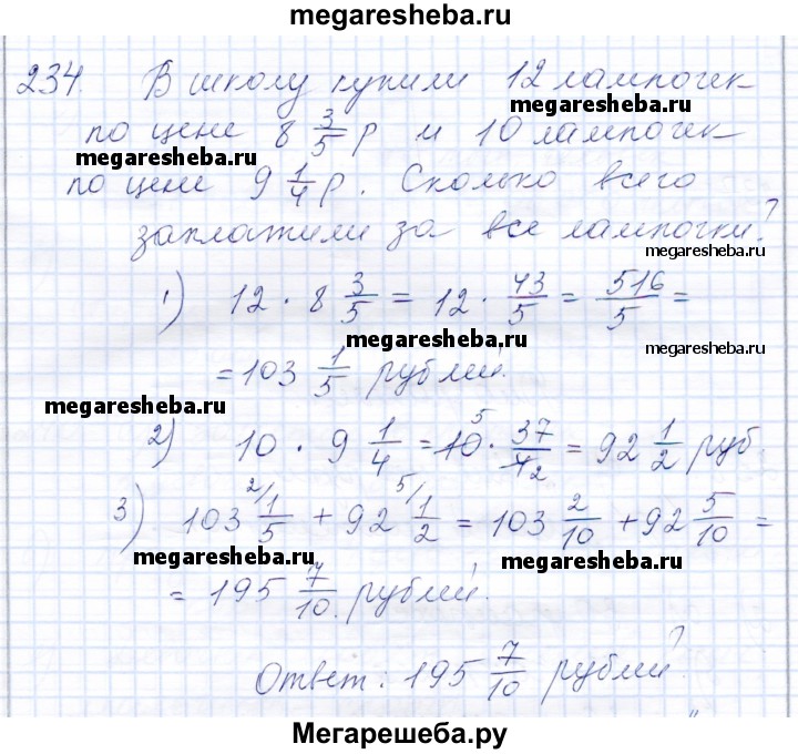 Подробный решебник (ГДЗ) по Математике за 8 (восьмой) класс рабочая тетрадь - готовый ответ упражнение - 234. Авторы учебника: Алышева, Для обучающихся с интеллектуальными нарушениями. Издательство: Просвещение 2021.