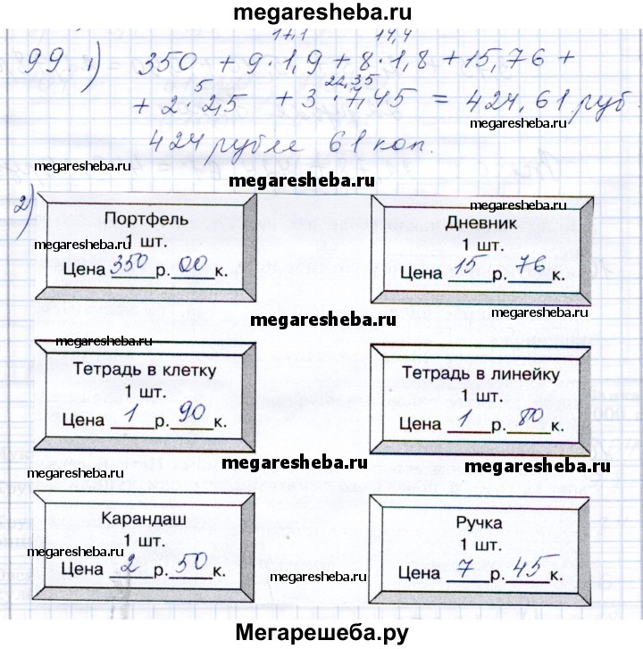 Подробный решебник (ГДЗ) по Математике за 8 (восьмой) класс рабочая тетрадь - готовый ответ упражнение - 99. Авторы учебника: Алышева, Для обучающихся с интеллектуальными нарушениями. Издательство: Просвещение 2021.