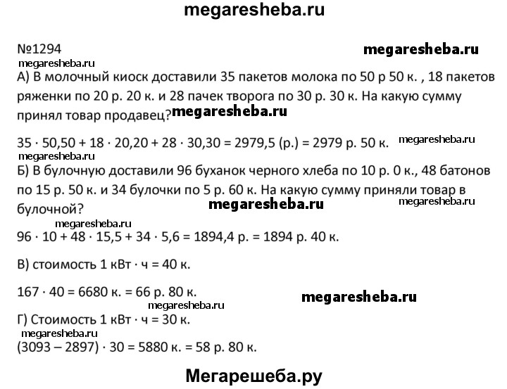Подробный решебник (ГДЗ) по Математике за 9 (девятый) класс - готовый ответ упражнение - 1294. Авторы учебника: Антропов, Ходот, Ходот, Для обучающихся с интеллектуальными нарушениями. Издательство: Просвещение 2021.