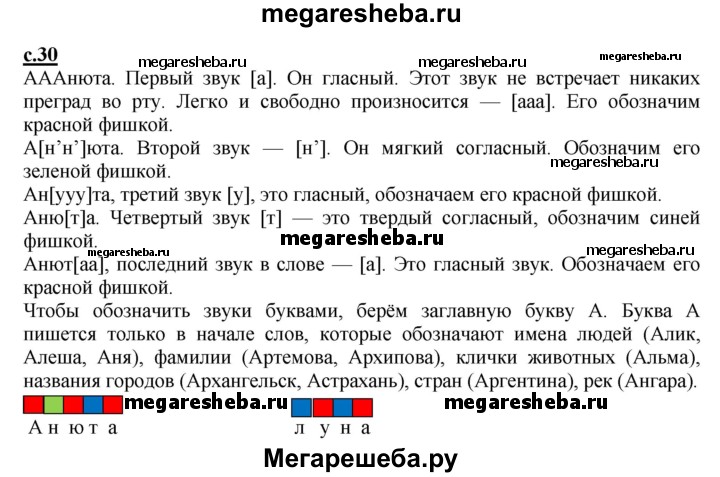 ГДЗ по русскому языку 1 класс Журова букварь часть 1. страница - 30