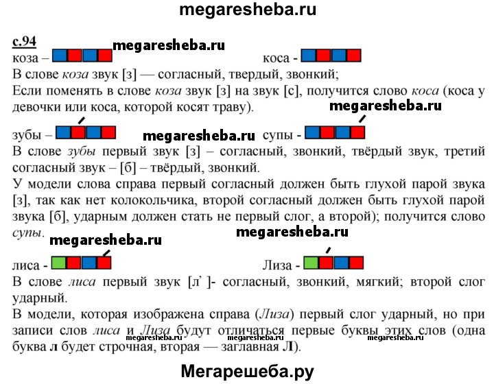 ГДЗ по русскому языку 1 класс Журова букварь часть 1. страница - 94
