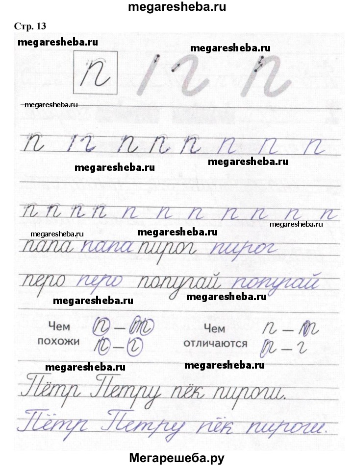 ГДЗ по русскому языку 1 класс Безруких прописи тетрадь №3. страница - 13