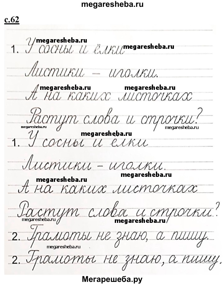 Подробный решебник (ГДЗ) по Русскому языку за 1 (первый) класс прописи - готовый ответ тетрадь №3. страница - 62. Авторы учебника: Безруких, Кузнецова. Издательство: Вентана-граф 2020-2023.