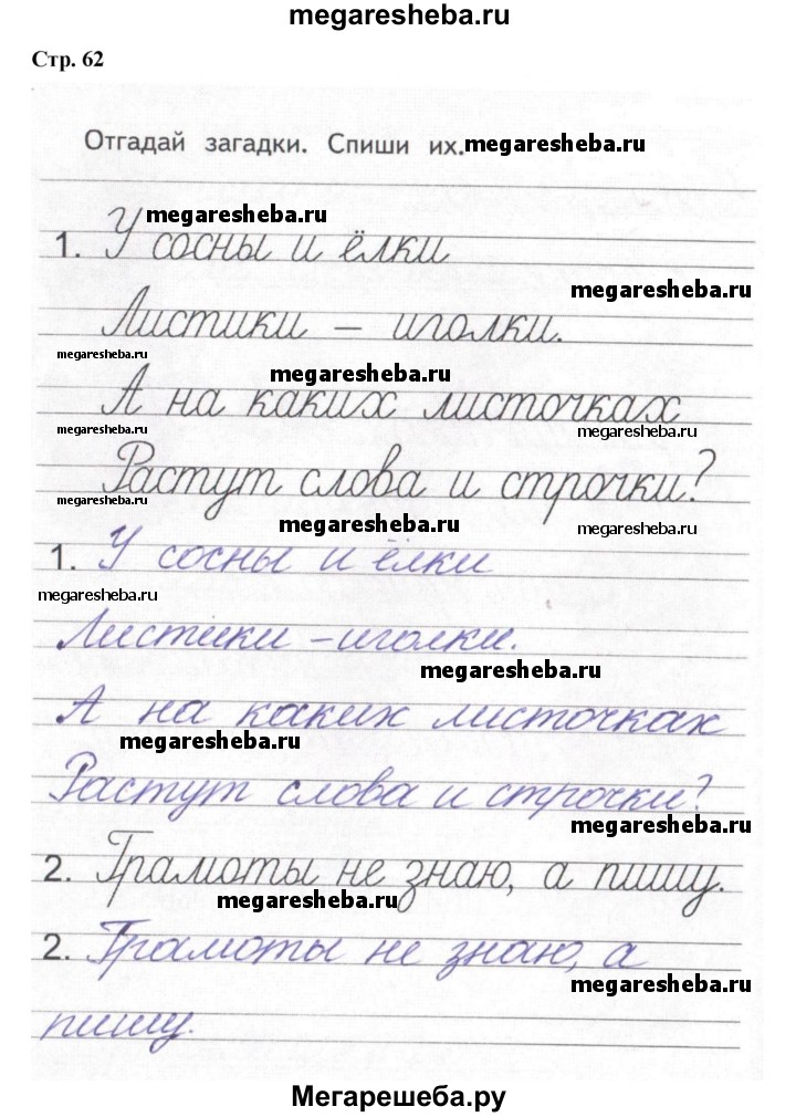 ГДЗ по русскому языку 1 класс Безруких прописи тетрадь №3. страница - 62