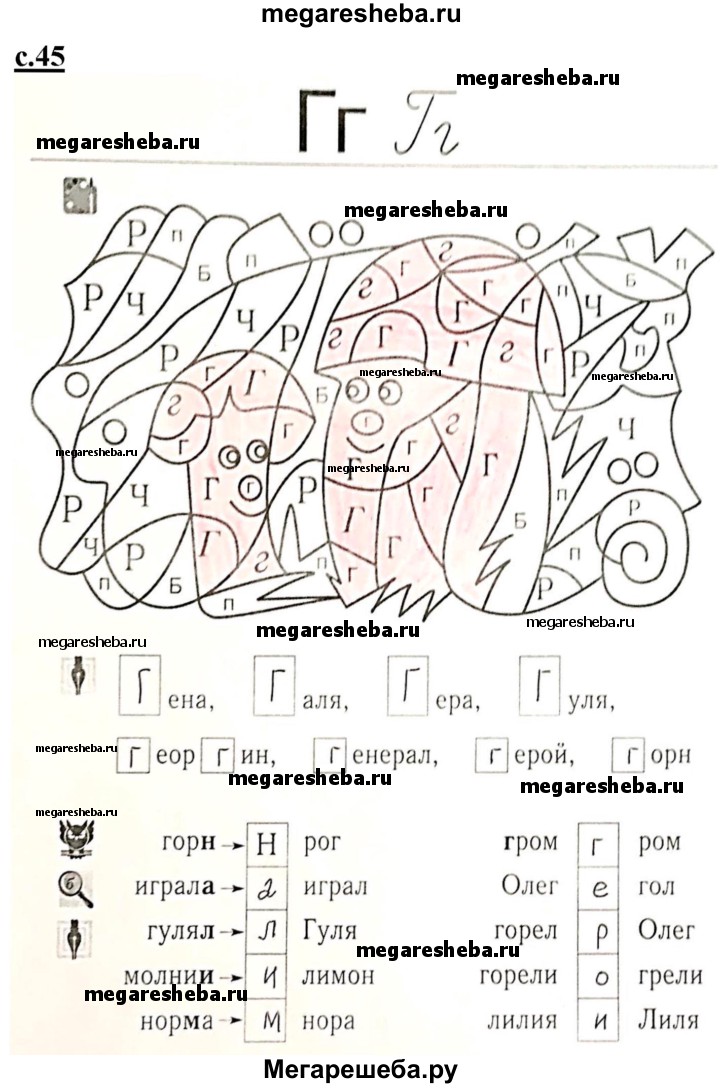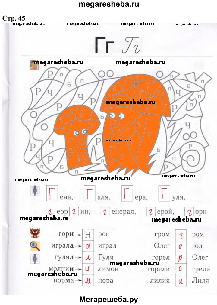 ГДЗ по русскому языку 1 класс Кузнецова рабочая тетрадь Я учусь писать и читать страница - 45