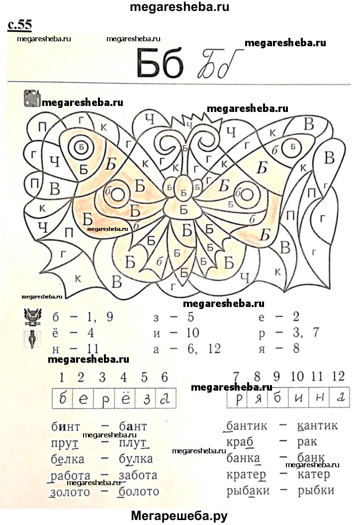 Подробный решебник (ГДЗ) по Русскому языку за 1 (первый) класс рабочая тетрадь Я учусь писать и читать - готовый ответ страница - 55. Авторы учебника: Кузнецова. Издательство: Вентана-граф 2020.