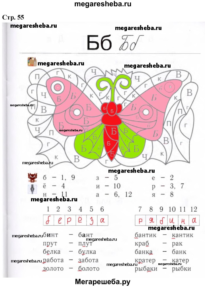 ГДЗ по русскому языку 1 класс Кузнецова рабочая тетрадь Я учусь писать и читать страница - 55