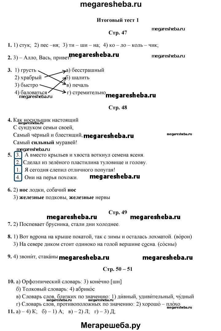 Подробный решебник (ГДЗ) по Русскому языку за 1 (первый) класс тесты - готовый ответ тест - Итоговый тест 1. Авторы учебника: Занадворова. Издательство: Просвещение 2023.