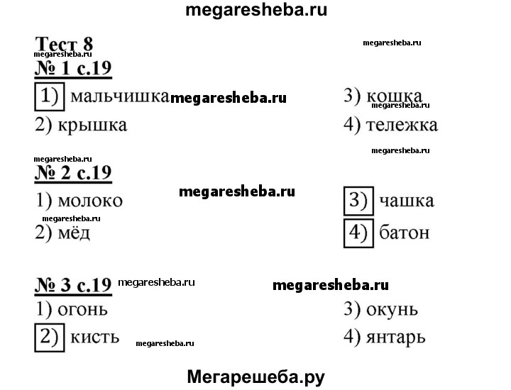 Подробный решебник (ГДЗ) по Русскому языку за 3 (третий) класс тестовые задания (тренировочные и контрольные задания) - готовый ответ часть 1. страница - 19. Авторы учебника: Корешкова. Издательство: Аст/Астрель 2018.