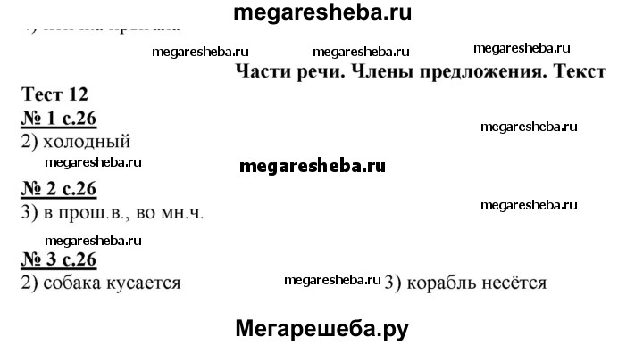 Подробный решебник (ГДЗ) по Русскому языку за 3 (третий) класс тестовые задания (тренировочные и контрольные задания) - готовый ответ часть 2. страница - 26. Авторы учебника: Корешкова. Издательство: Аст/Астрель 2018.