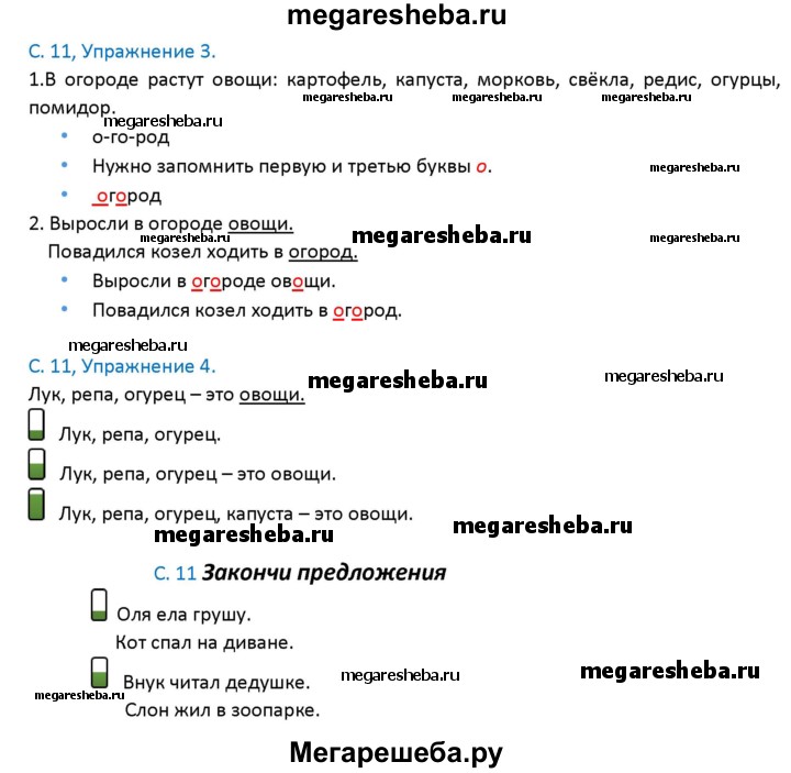 Подробный решебник (ГДЗ) по Русскому языку за 3 (третий) класс - готовый ответ часть 1. страница - 11. Авторы учебника: Якубовская, Коршунова, Для обучающихся с интеллектуальными нарушениями. Издательство: Просвещение 2021.