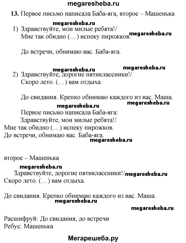 Подробный решебник (ГДЗ) по Русскому языку за 5 (пятый) класс рабочая тетрадь - готовый ответ письмо - 13. Авторы учебника: Якубовская, Галунчикова, Коршунова, Для обучающихся с интеллектуальными нарушениями. Издательство: Просвещение 2021.