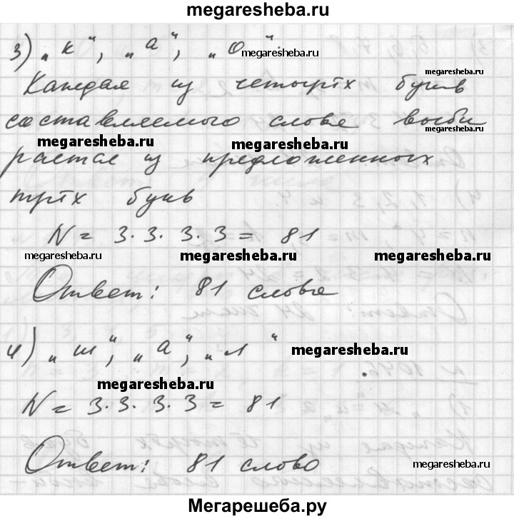 1046. Сколько различных четырёхбуквенных слов можно записать с помощью букв: 1) «м» и «а»; 2) «п» и «а»; 3) «к», «а» и «о»; 4) «ш», «а» и «л»?