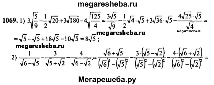 Подробный решебник (ГДЗ) по Алгебре за 10‐11 (десятый‐одиннадцатый) класс - готовый ответ упражнение - 1069. Авторы учебника: Алимов, Колягин, Ткачева, Базовый и углубленный уровень. Издательство: Просвещение 2015-2024.