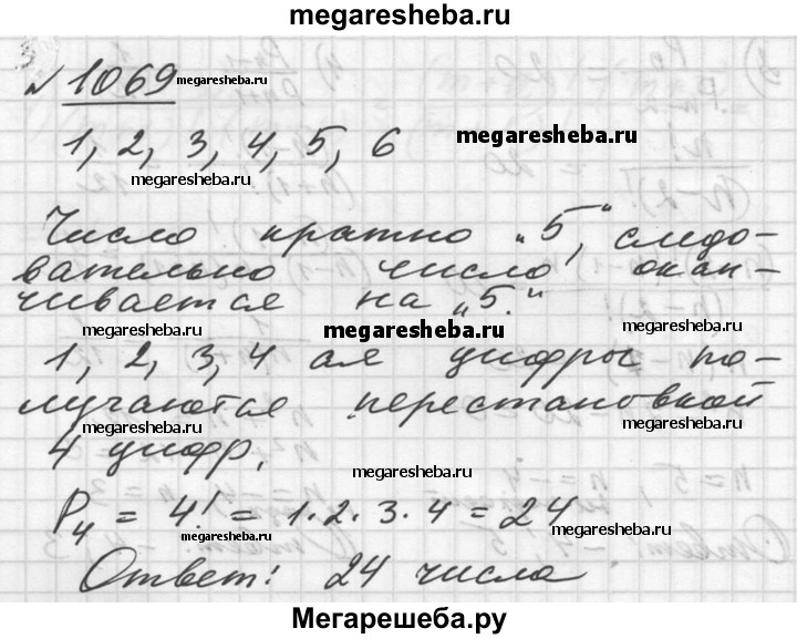 1069. Сколько различных шестизначных чисел, не содержащих одинаковых цифр и кратных 5, можно записать с помощью цифр 1, 2, 3, 4, 5 и 6?