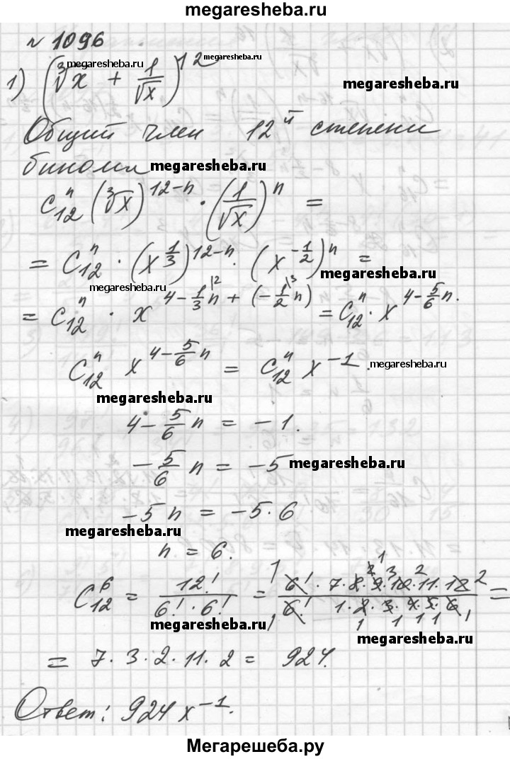 Подробный решебник (ГДЗ) по Алгебре за 10‐11 (десятый‐одиннадцатый) класс - готовый ответ упражнение - 1096. Авторы учебника: Алимов, Колягин, Ткачева, Базовый и углубленный уровень. Издательство: Просвещение 2015-2024.