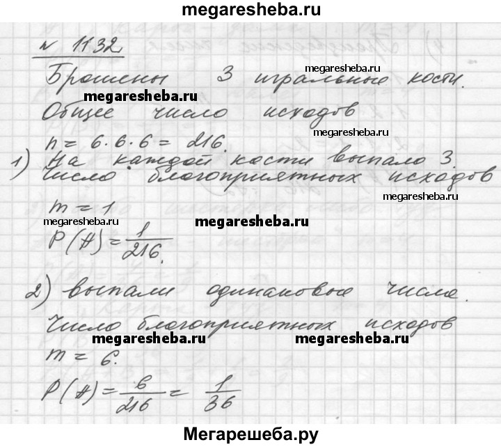 1132. Брошены 3 игральные кости. Какова вероятность того, что: 1) на каждой кости выпало число 3; 2) выпали одинаковые числа; 3) сумма чисел на всех костях равна 4; 4) произведение всех выпавших чисел равно 2?