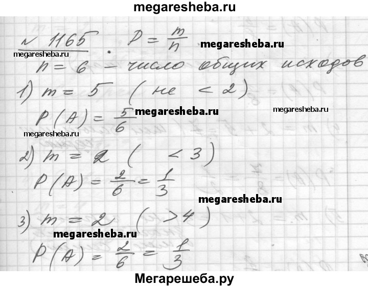 1165. Брошена игральная кость. Найти вероятность события: 1) выпало число, не меньшее 2; 2) выпало число, меньшее 3; 3) выпало число, большее 4; 4) выпало число, не большее 5.