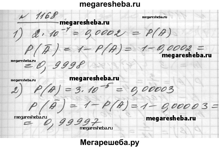 1168. Вероятность выигрыша по одному лотерейному билету в некоторой лотерее равна: 1) 2 * 10^-4; 2) 3 * 10^-5. Какова вероятность приобрести невыигрышный билет при покупке одного билета?