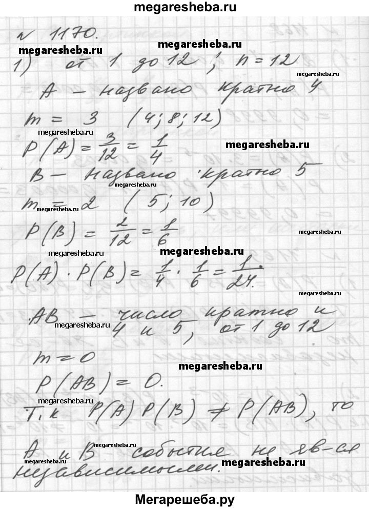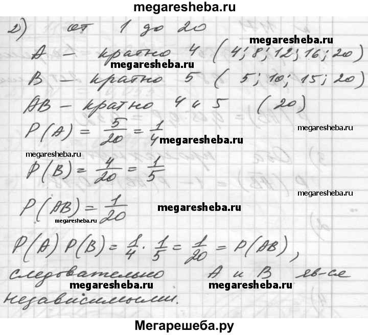 1170. Наугад называется одно из первых: 1) девятнадцати; 2) двадцати натуральных чисел; рассматриваются события: А — названо число, кратное 4, В — названо число, кратное 5. Выяснить, являются ли события А и В независимыми.