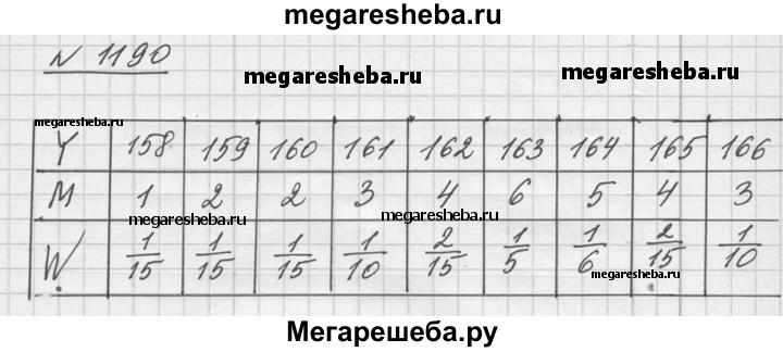1190. Составить таблицы распределения по частотам (М) и относительным частотам (W), а также полигон частот значений случайной величины Y — ростов 30 девушек спортивной секции гимнастики, приведённых (с точностью до 1 см) в таблице: