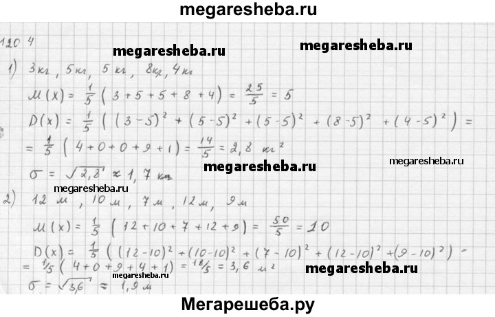 1204. Найти среднее квадратичное отклонение от среднего значения элементов выборки: 1) 3 кг, 5 кг, 5 кг, 8 кг, 4 кг; 2) 12 м, 10 м, 7 м, 12 м, 9 м.