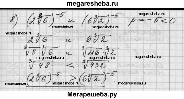 124. Сравнить значения выражений: 1) З,1^7 и 4,3^7; 2) (10/11)^3 и (12/11)^3; 3) 0,3^8 и 0,2^8; 4) 2,5^2 и 2,б^2; 5) (4√3)^-3 и (3√4)^-3; 6) (14/15)^-6 и (15/16)^-6; 7) (4√3)^-3 и (З√4)^-3; 8) (2 ^3√б)^-5 и (6 ^3√2)^-5.
