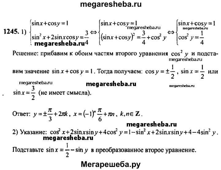 Подробный решебник (ГДЗ) по Алгебре за 10‐11 (десятый‐одиннадцатый) класс - готовый ответ упражнение - 1245. Авторы учебника: Алимов, Колягин, Ткачева, Базовый и углубленный уровень. Издательство: Просвещение 2015-2024.