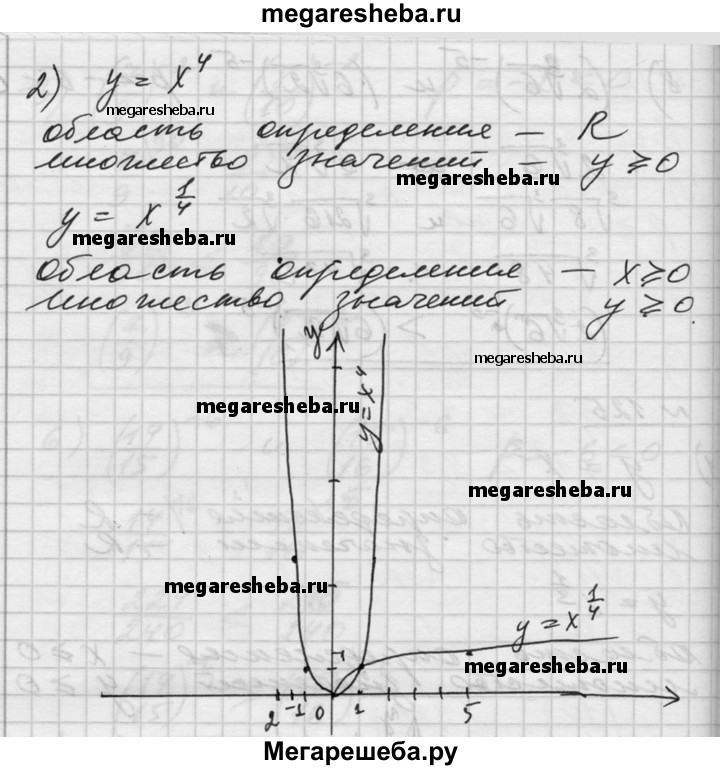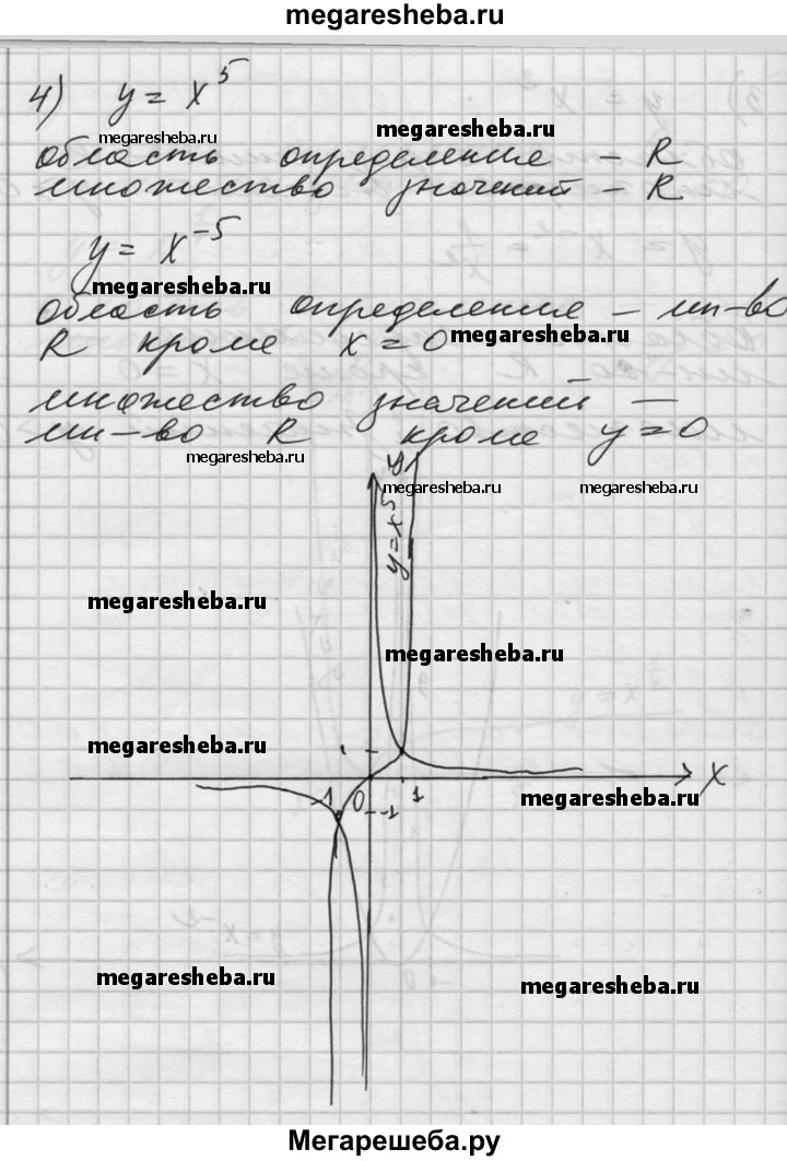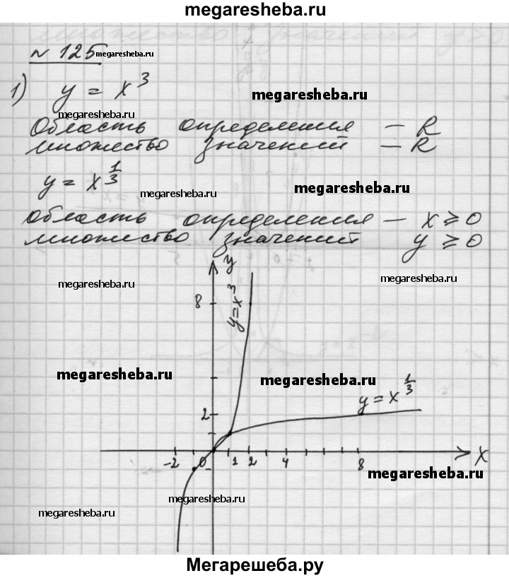 125. В одной системе координат построить графики функций, находя сначала их области определения и множества значений: 1) у = х^3 и у = х^1/3 ; 2) у = х^4 и у = х^1/4; 3) у = х^2 и у = х^-2; 4) у = х^5 и у = х^-5.