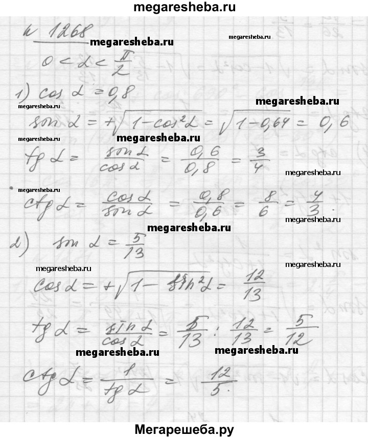 Подробный решебник (ГДЗ) по Алгебре за 10‐11 (десятый‐одиннадцатый) класс - готовый ответ упражнение - 1268. Авторы учебника: Алимов, Колягин, Ткачева, Базовый и углубленный уровень. Издательство: Просвещение 2015-2024.