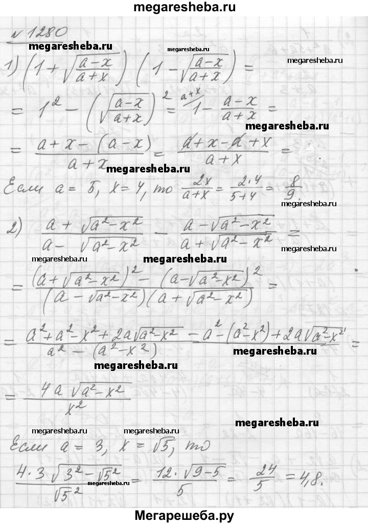 Подробный решебник (ГДЗ) по Алгебре за 10‐11 (десятый‐одиннадцатый) класс - готовый ответ упражнение - 1280. Авторы учебника: Алимов, Колягин, Ткачева, Базовый и углубленный уровень. Издательство: Просвещение 2015-2024.