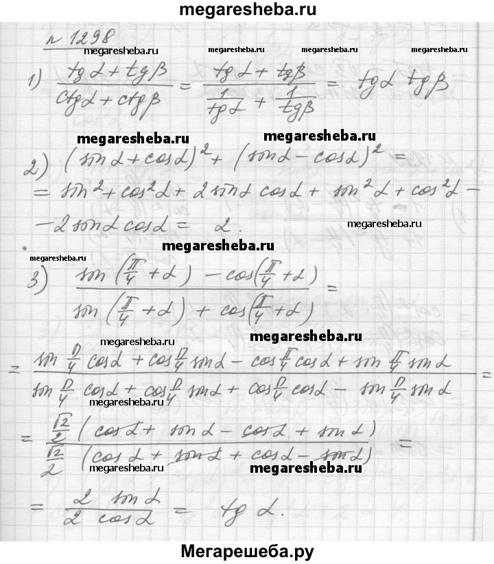 Подробный решебник (ГДЗ) по Алгебре за 10‐11 (десятый‐одиннадцатый) класс - готовый ответ упражнение - 1298. Авторы учебника: Алимов, Колягин, Ткачева, Базовый и углубленный уровень. Издательство: Просвещение 2015-2024.