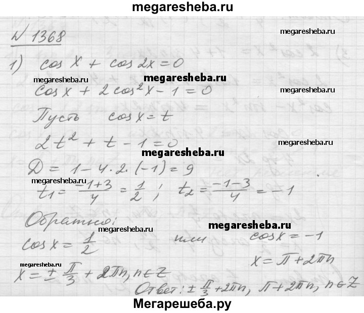 Подробный решебник (ГДЗ) по Алгебре за 10‐11 (десятый‐одиннадцатый) класс - готовый ответ упражнение - 1368. Авторы учебника: Алимов, Колягин, Ткачева, Базовый и углубленный уровень. Издательство: Просвещение 2015-2024.